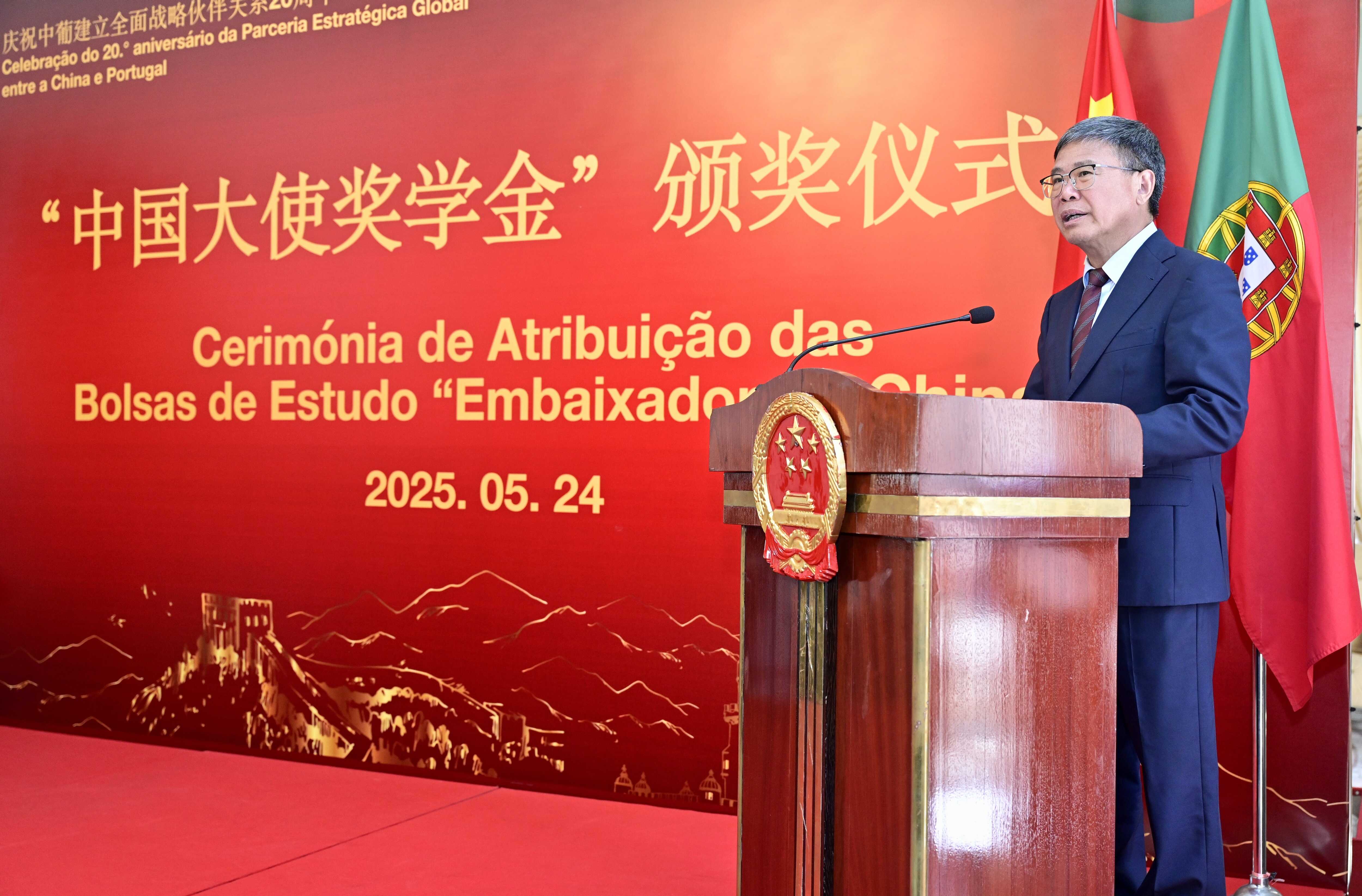 驻葡萄牙使馆举办2025年“中国大使奖学金”颁奖仪式暨“中葡教育交流贡献奖”授予仪式