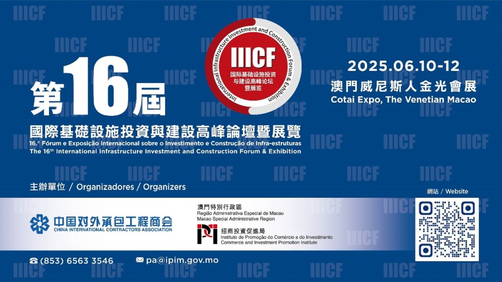 The 16th International Infrastructure Investment and Construction Forum & Exhibition (IIICF), jointly organised by the Commerce and Investment Promotion Institute (IPIM) of the Macao Special Administrative Region and the China International Contractors Association (CHINCA), will take place this June in Macao, under the theme “Enhanced Connectivity for Win-Win Co-operation”.