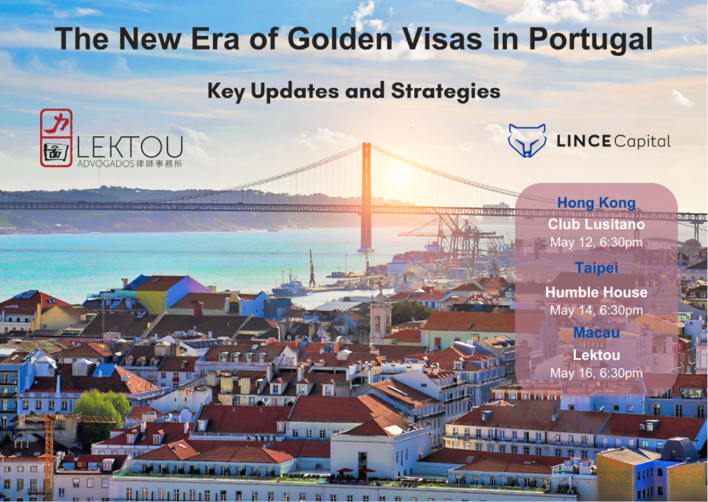 Lektou Advogados, a CCILC member, is organizing a series of conferences entitled “The New Era of Golden Visas in Portugal – Key Updates and Strategies”, to be held in: